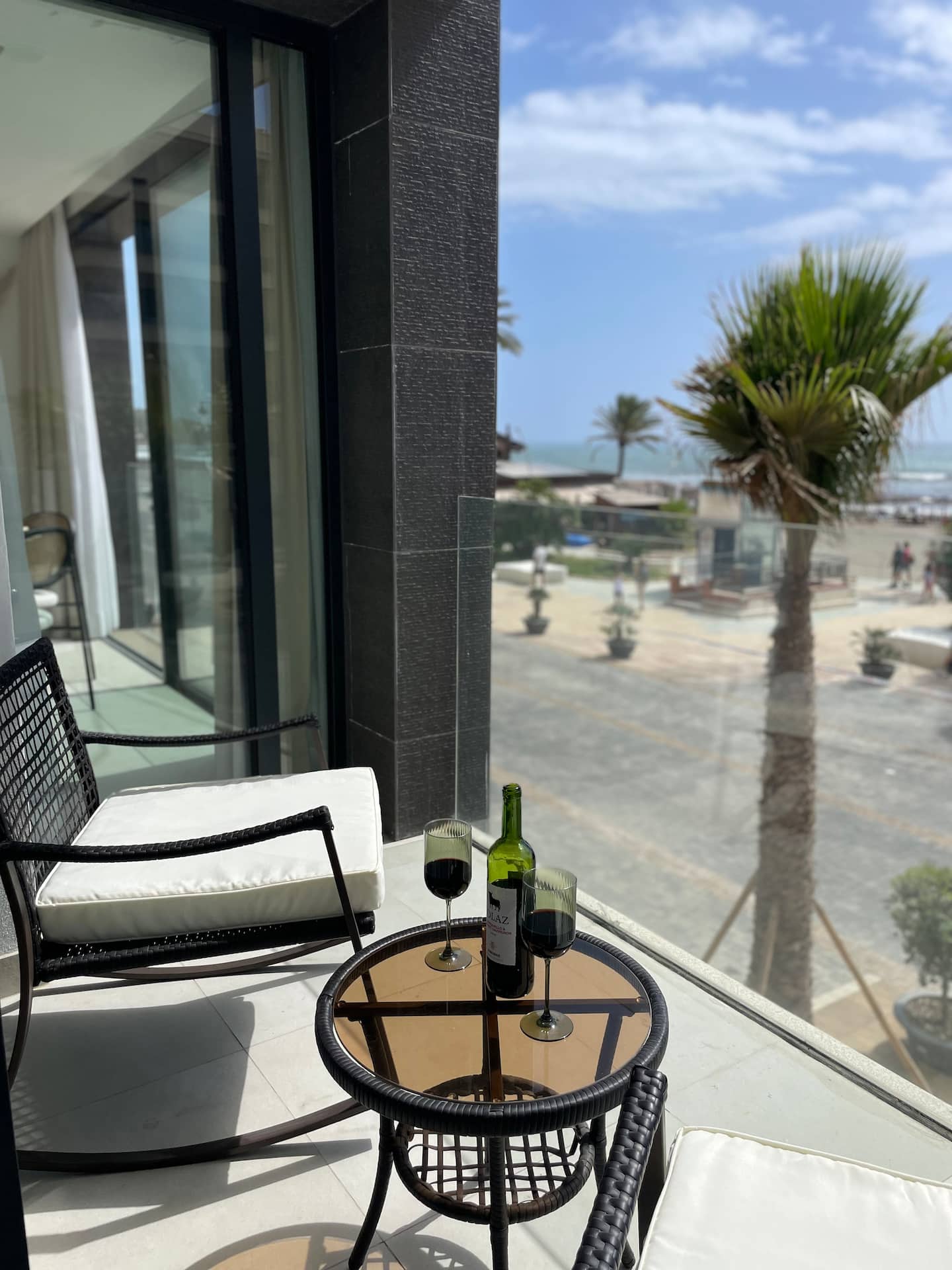 Apartament składa się z salonu, aneksu kuchennego, sypialni, łazienki, balkonu z widokiem na morze.